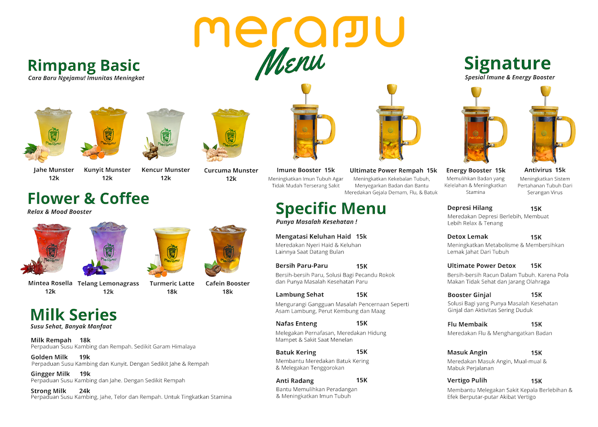 In summary, Meramu - Cafe Minuman Rempah is more than just a café; it's an experience that celebrates the essence of Indonesian herbal beverages while maintaining a contemporary flair. Enjoy a moment of relaxation and recharge with every sip.